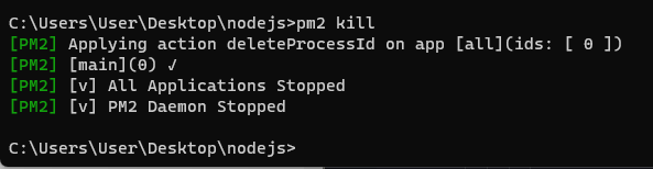 프로그램을 끄고 싶을 땐 pm2 stop 파일명 을 입력해주면 된다.