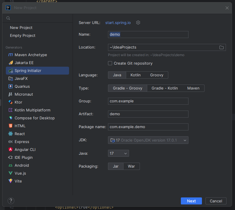 Spring Initializr를 통해서 프로젝트를 생성하고